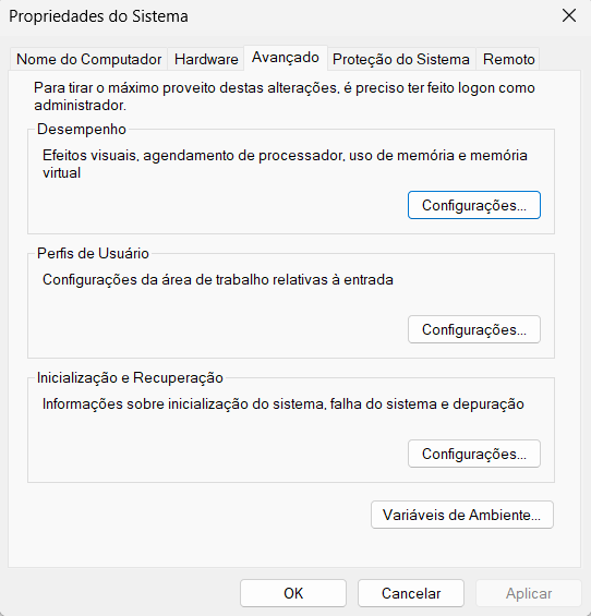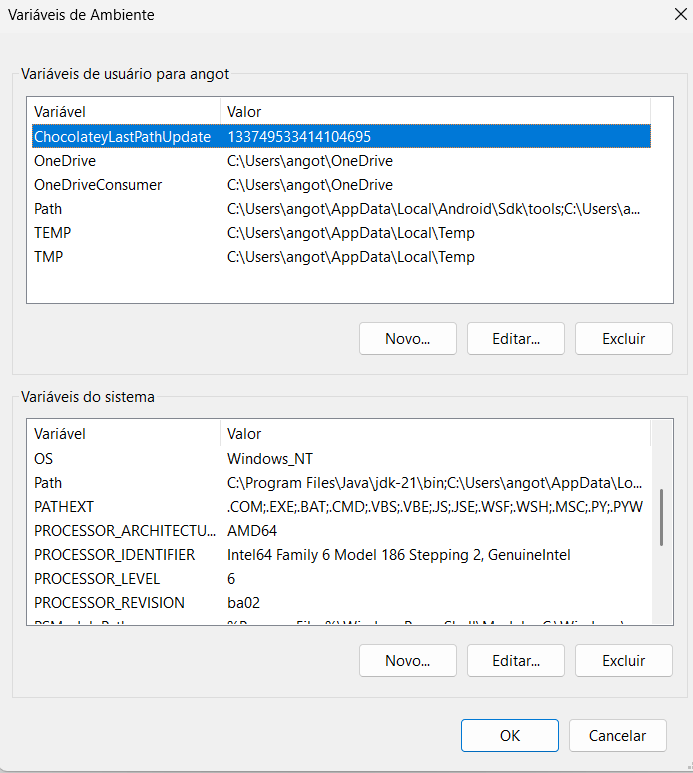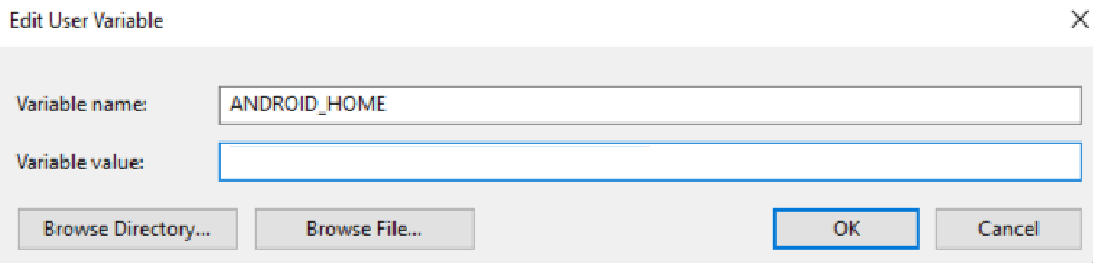 As ferramentas React Native exigem que algumas variáveis de ambiente sejam configuradas para criar aplicativos com código nativo. Abra as configurações do windows e procure por "variáveis de ambiente".